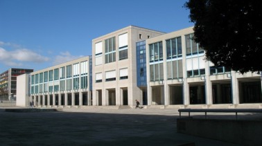 Trois ans après sa construction, c’est l’autre bâtiment du complexe qui est achevé, abritant l’immense salle de gym, le restaurant scolaire et le théâtre de Grand Champ.